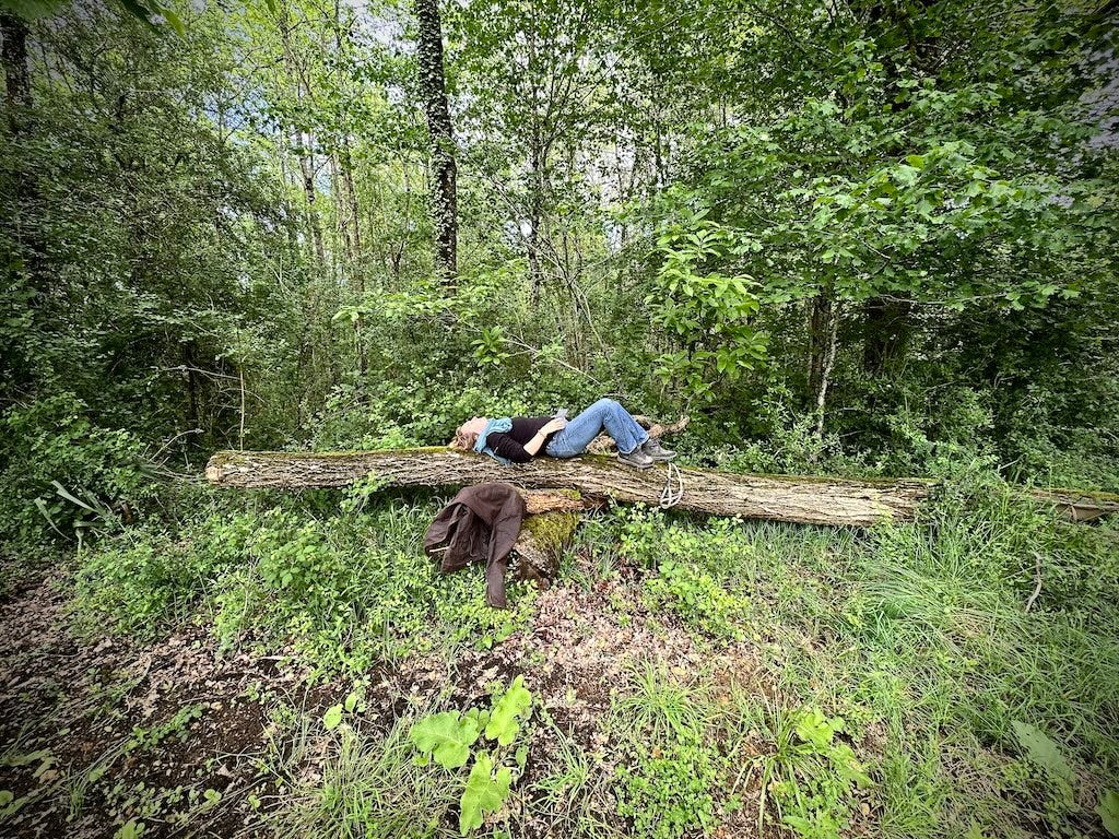 ‘Het bos hier is prachtig, hoor. En lekker stil, maar zie je hoe armoedig het eigenlijk is?’ zegt Wyb. ‘Als je dit toch vergelijkt met de vegetatie van de bossen in Cadouin.’